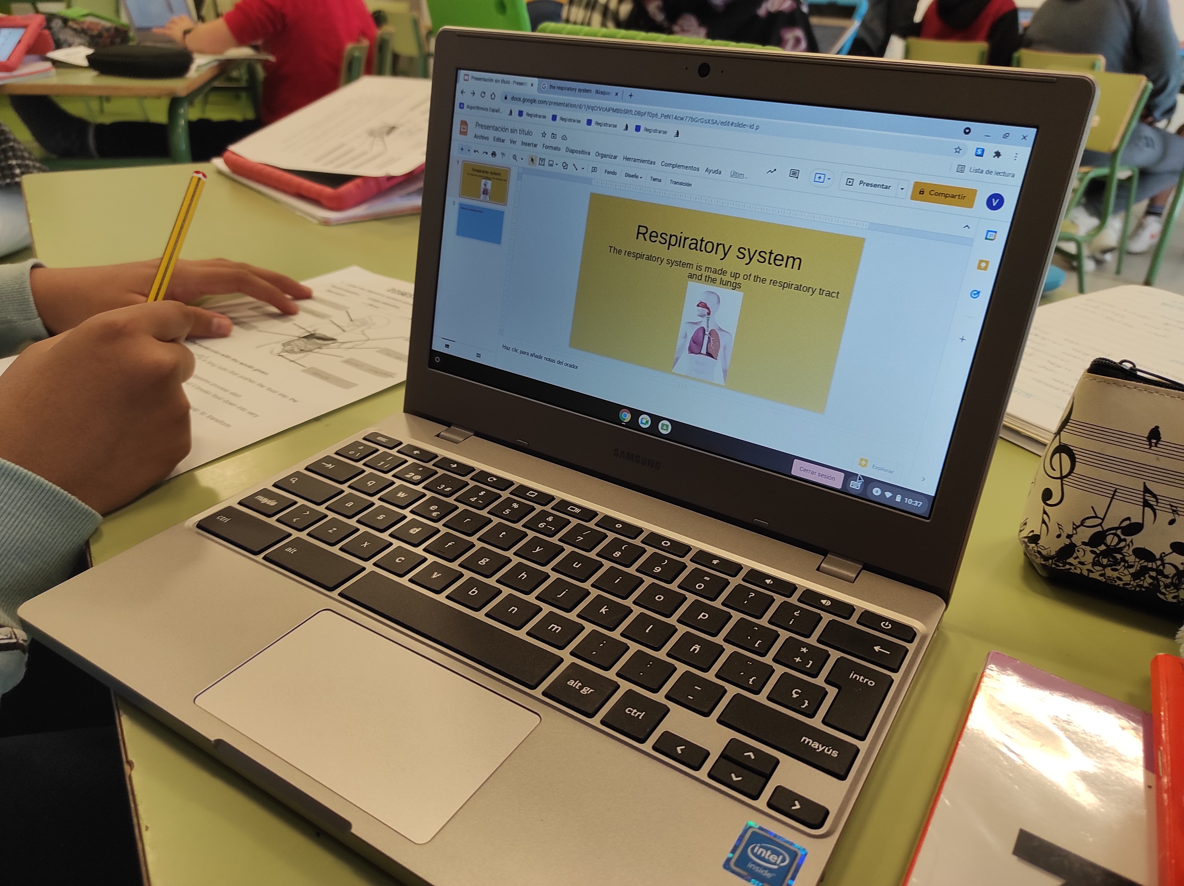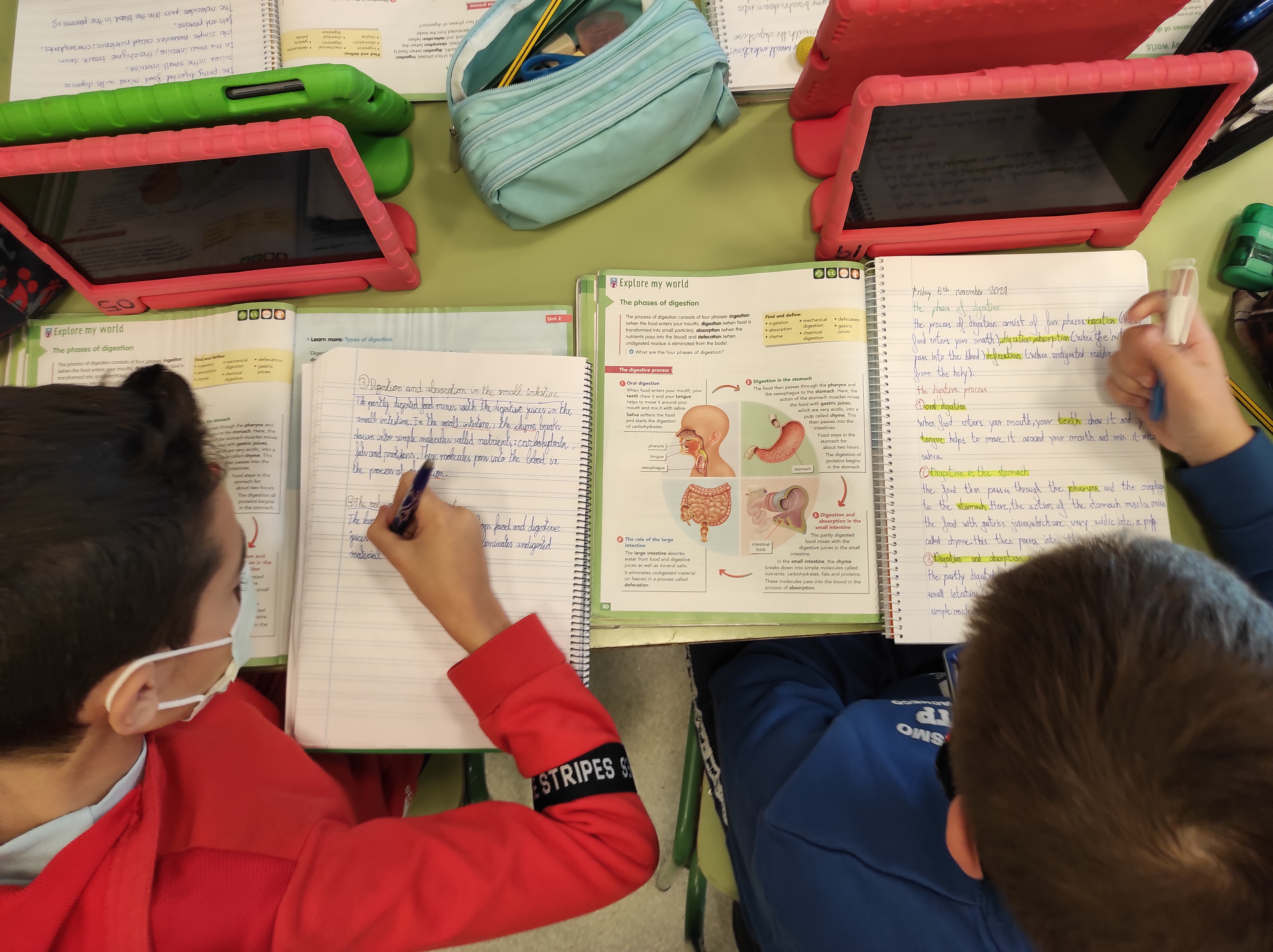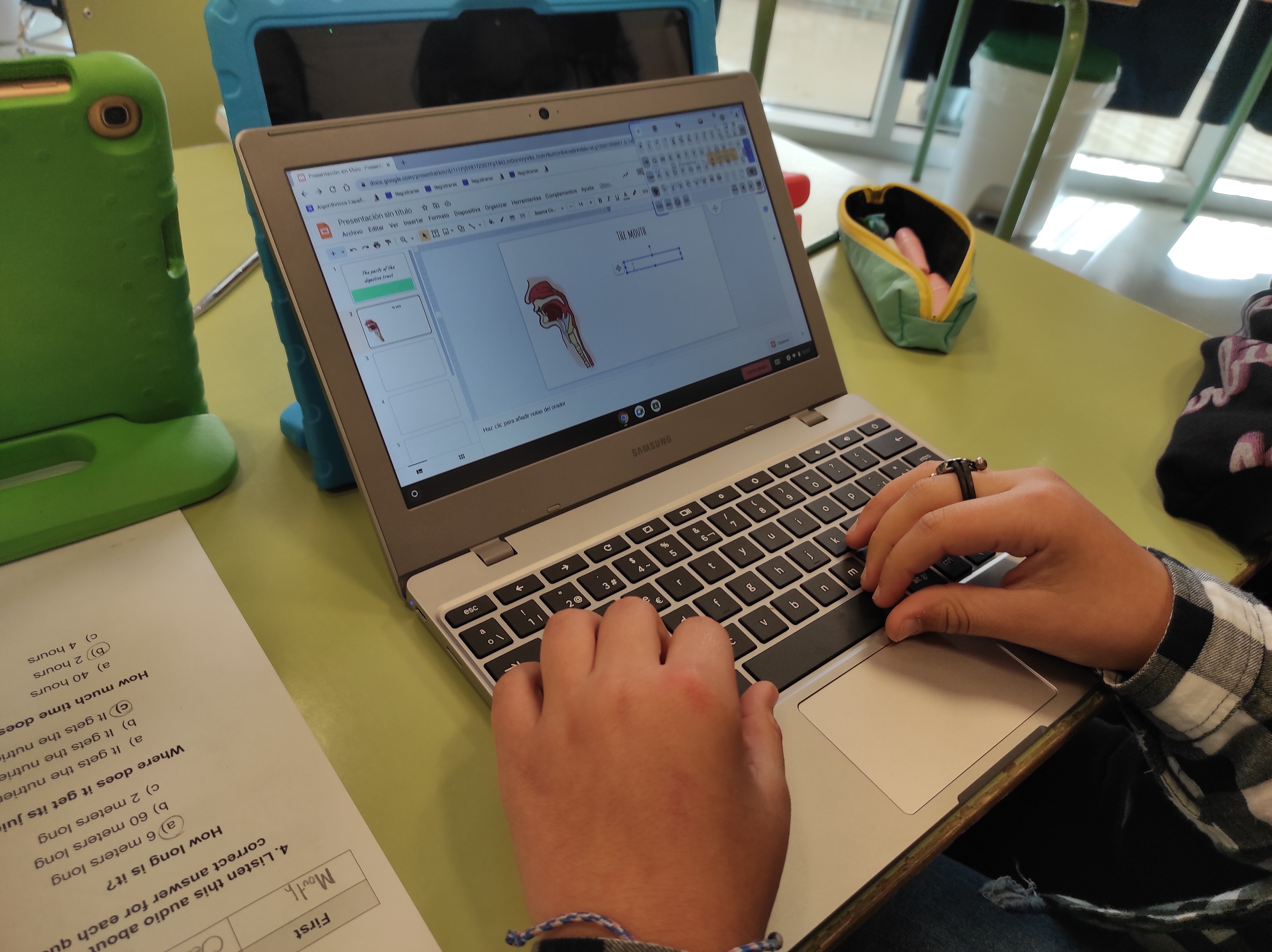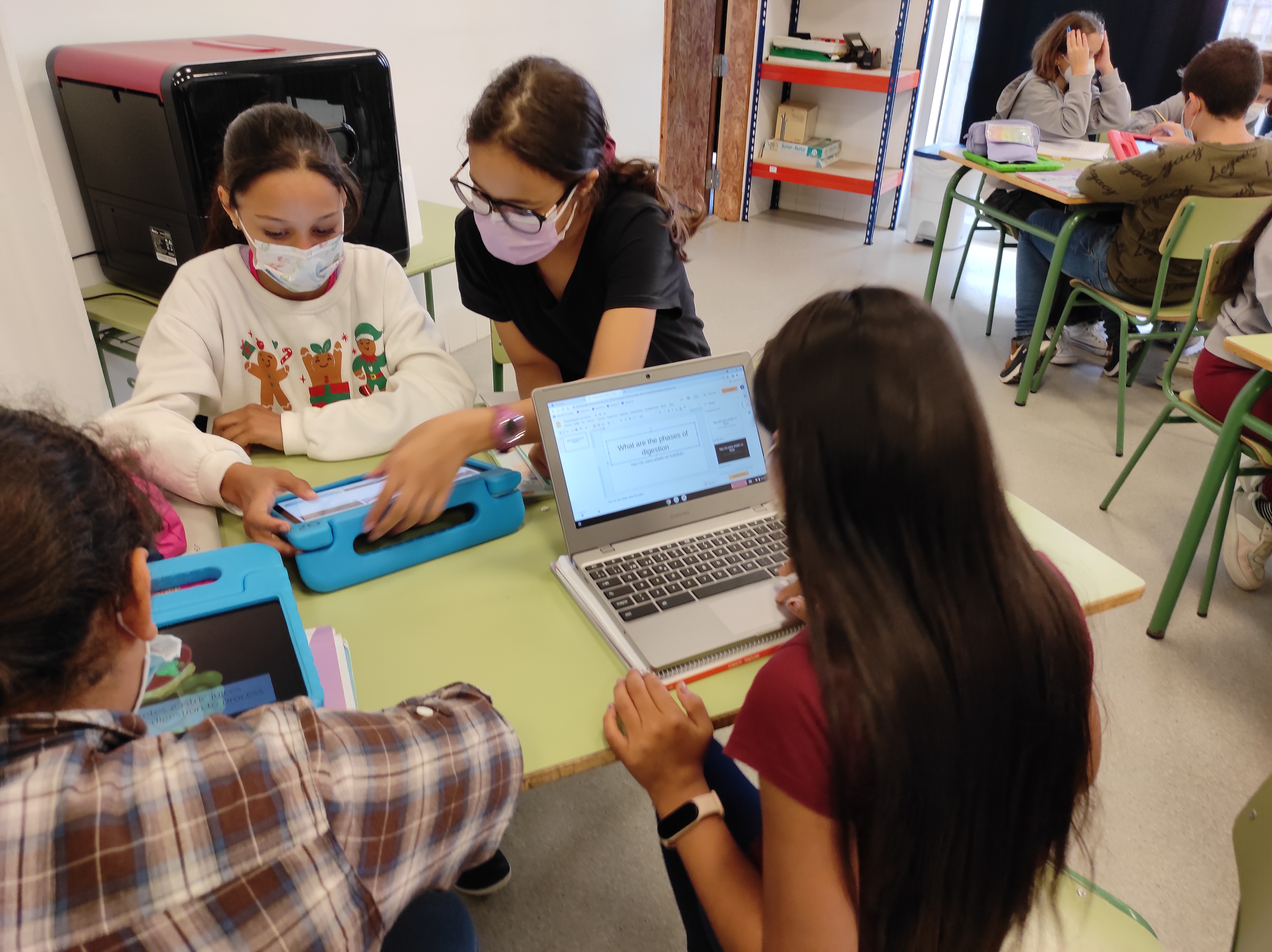 Se trata de un proyecto dividido en varias fases. En un principio, aprenden con ayuda de la Realidad Aumentada a localizar los diferentes órganos que intervienen en el proceso digestivo. Asimismo, pueden observar con precisión las distintas fases de la digestión. En una segunda fase colaboran, en pequeño grupo, en la creación de presentaciones que más tarde expondrán en gran grupo. Para esta última fase emplean las herramientas digitales G-Suite de Google que nos ofrecen las cuentas corporativas @alu.murciaeduca.es.