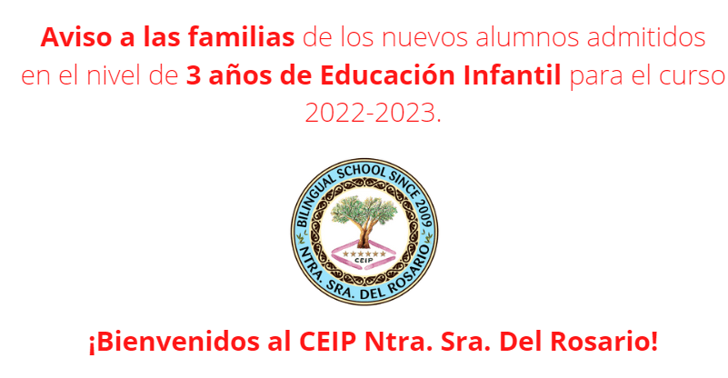 Es tradición en nuestro centro, una vez conocidas las listas definitivas de admisión de 3 años de E. Infantil, realizar una reunión informativa con las familias que pasan a formar parte de nuestra comunidad educativa. Dadas las circunstancias y con el fin de mantener las medidas de seguridad por COVID-19, nos vemos obligados a comunicarnos con vosotros por medio de una circular, para dar la bienvenida al centro e informar de aquellos aspectos más relevantes para iniciar el próximo curso escolar 2022-2023 que comenzamos en septiembre.