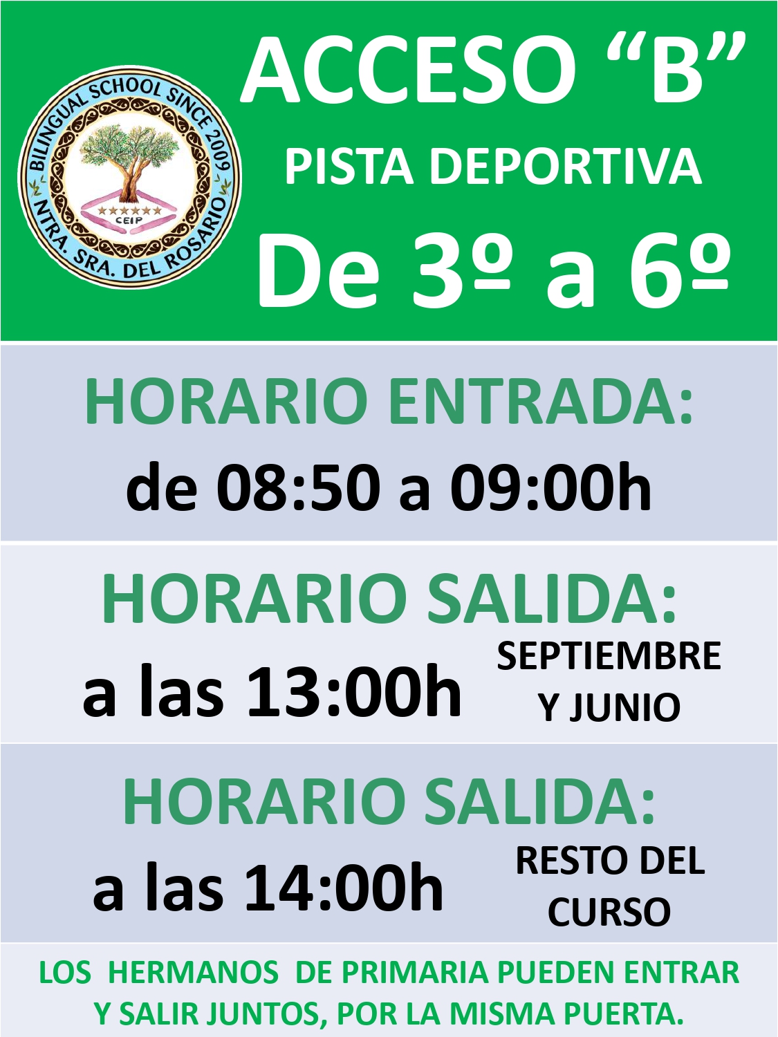 Estimadas familias. Compartimos información importante de cara a garantizar un buen inicio del curso escolar el próximo 8 de septiembre. Acceso y horarios del alumnado: