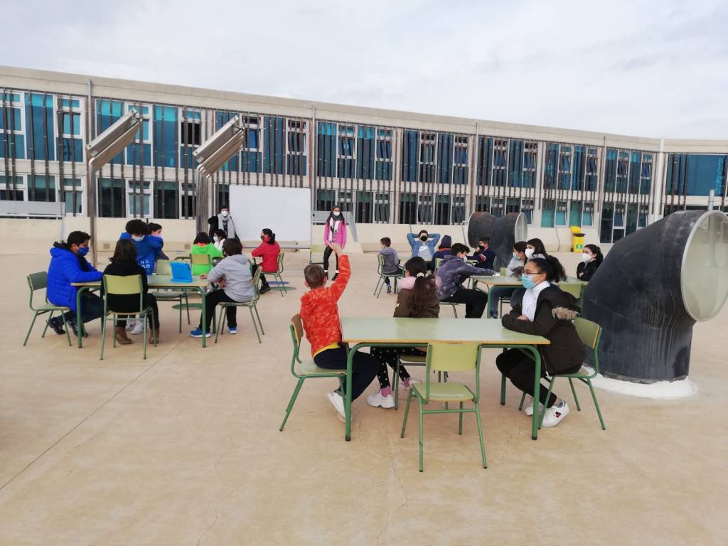 Entre las acciones que iniciamos en el presente trimestre dentro del Programa Aire Limpio, de la Consejería de Educación, se encuentra la creación de aulas al aire libre en zonas habilitadas del patio.