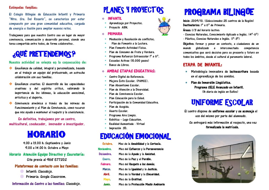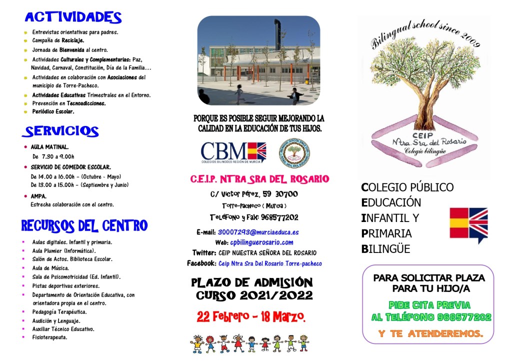 lamentablemente este curso escolar, atendiendo a la situación de pandemia en la que nos encontramos, no podremos reunirnos en una jornada de puertas abiertas, como es costumbre en nuestro centro, para presentar nuestro cole. Aún así, queremos compartir con vosotros nuestra tradicional carta de servicios, que habitualmente entregábamos físicamente en guarderías y escuelas municipales, de cara a la admisión de alumnado que comienza el próximo 22 de febrero.
