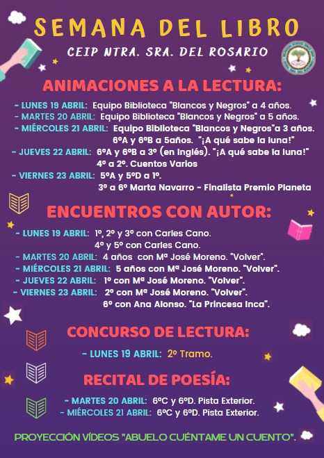Por ello, en nuestro colegio comenzamos desde hoy una intensa semana cargada de actividades dedicadas al Día del Libro, con cuenta cuentos, animaciones a la lectura y encuentros con autores de libros leídos por nuestros alumnos a lo largo del presente curso...