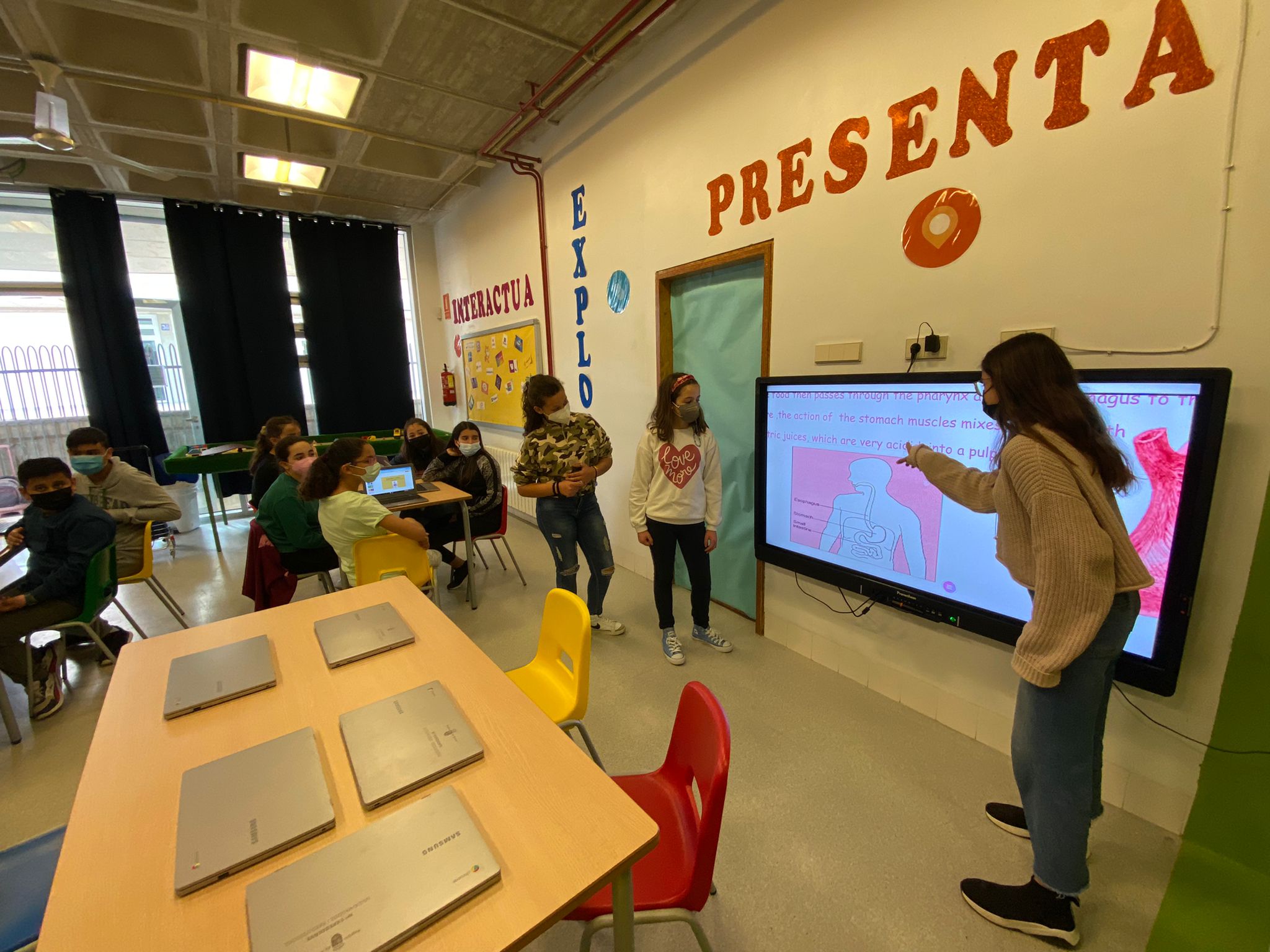 Desde el inicio del presente curso 2021-22, nuestro centro cuenta con un aula nueva, el Aula de Innovación. Gracias a todas las posibilidades que ofrece: un panel interactivo Promeathean, chromebooks, tablets, gafas virtuales en 3D, zona chroma key, zona Lego, etc., nuestros alumnos aprenden con un modelo pedagógico innovador utilizando distintas herramientas digitales y, además, desarrollando conjuntamente su competencia digital.