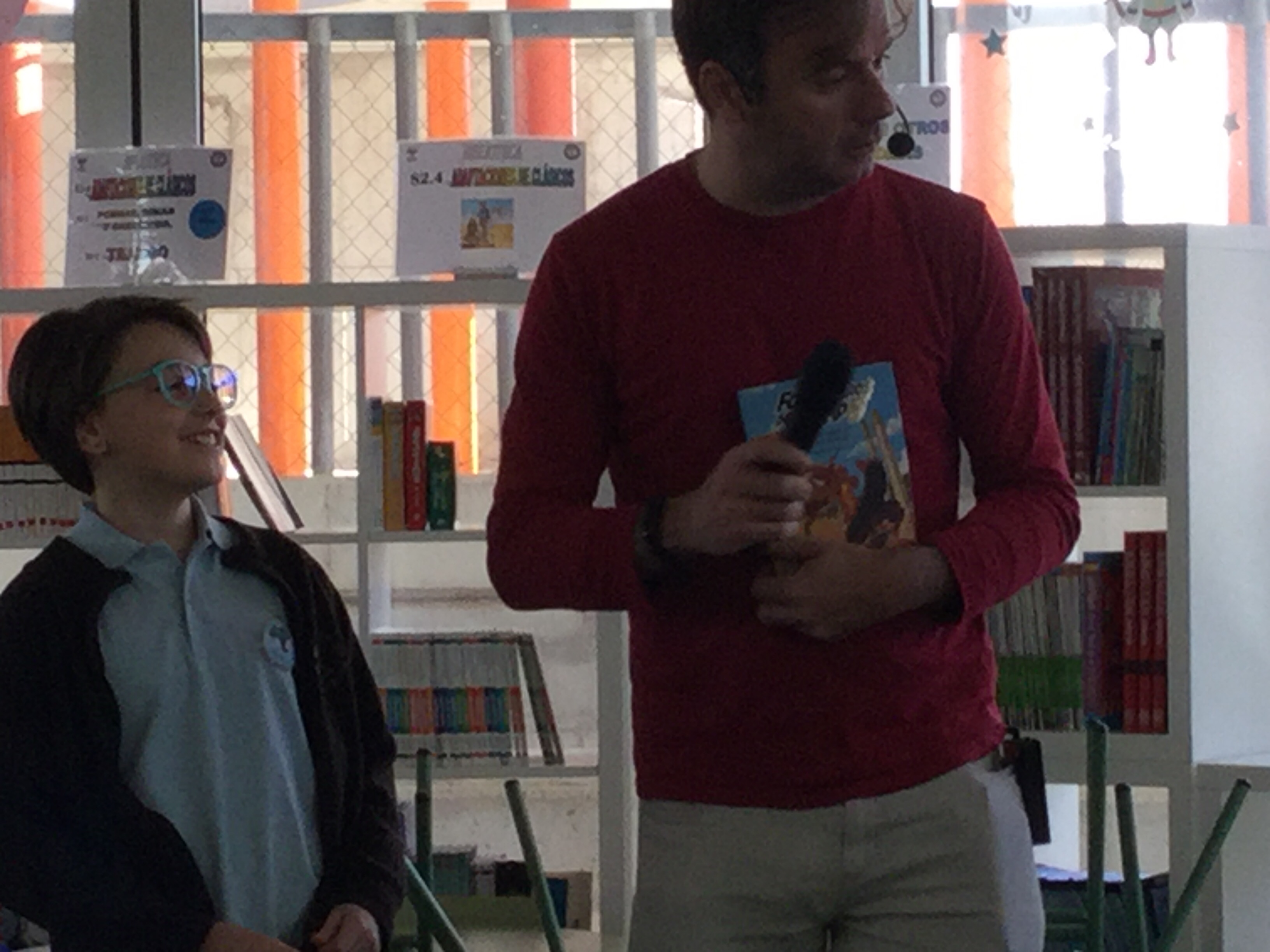 Esta mañana contamos en la Biblioteca de nuestro centro con la animación a la lectura del gran Mariano Cegarra, destinada al alumnado de quinto. Lo están pasando genial… ¡Gracias por tu visita!